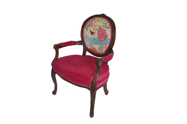 Thrift Store on Valencia street a beautiful Louis XVI chair in a very bad condition. I asked my mother about the upholstery technique. I bought the Japanese cotton printed fabric and the pink velvet, some nails, a specialized hammer... and look what I did!